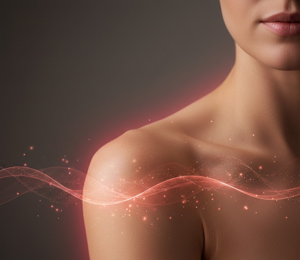 Un mot sur la PBM : La photobiomodulation, aussi appelée photobiostimulation, consiste à éclairer la peau avec une lumière douce – souvent des LED ou de petits lasers – dont la couleur va du rouge au proche infrarouge (environ 660‑850 nm). Contrairement aux UV, elle n’agresse pas la peau : elle la traverse en douceur. Absorbée par les tissus elle atteint les mitochondries qui sont les centrales énergétiques de nos cellules: ce sont elles qui fournissent l’énergie nécessaire au bon fonctionnement de chaque cellule du corps. Stimulées par la lumière, les mitochondries augmentent leur production d’ATP (adénosine triphosphate), une molécule qui est le véritable carburant de nos cellules. Chaque fois qu’une cellule doit se réparer, se diviser, produire du collagène ou lutter contre une inflammation, elle a besoin d’ATP. Plus les cellules disposent d’ATP, plus elles peuvent fonctionner efficacement pour réduire l’inflammation, accélérer des processus de réparation et de cicatrisation, ou encore stimuler la production de collagène. La PBM agit donc en profondeur, en aidant les cellules à mieux faire leur travail naturel.